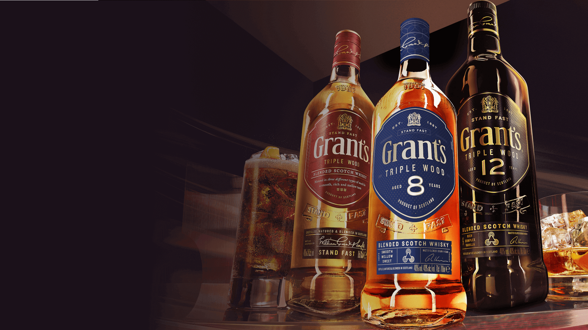 Niektóre whisky zawdzięczają swój smak jednej drewnianej beczce. Natomiast Grant’s Triple Wood 12YO dojrzewa w trzech różnych rodzajach drewna: beczce po Sherry, która odpowiada za intensywną nutę przypraw, beczce z amerykańskiego dębu, która nadaje subtelnej, waniliowej gładkości oraz beczce po Bourbonie zapewniającej słodycz brązowego cukru. Dzięki tym trzem beczkom whisky Grant’s Triple Wood 12YO odznacza się bogatym i złożonym smakiem. 12-letni wariant marki Grant’s Triple Wood stanowi idealną propozycję dla koneserów, którzy poszukują wyjątkowej jakości.