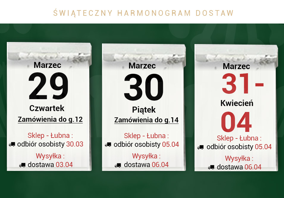 Harmonogram dostaw - Święta Wielkanocne 2018