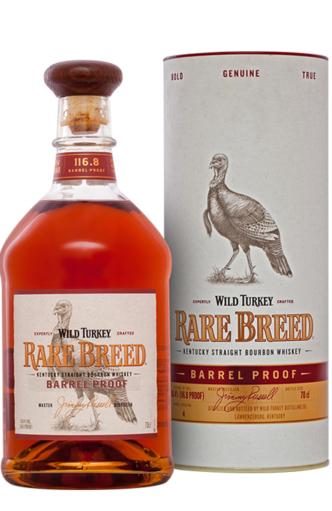 Nazwa dosłownie oznacza rzadką rasę, co wiernie odzwierciedla charakter tego niezwykłego trunku. Jest to przedstawiciel kategorii bourbonów o nazwie Barrel Proof co oznacza, że jest o mocy beczki. Ta mieszanka 6, 8 i 12 letnich Bourbonów nie jest w ogóle rozcieńczana przed butelkowaniem, co daje wrażenie spożywania trunku prosto z beczki - 58,4% (116,8 proof). Wild Turkey Rare Breed posiada niezwykle bogaty i intensywny aromat oraz smak, gdzie możemy doszukać się wielu przyprawowych, deserowych czy owocowych nut, bez śladu alkoholowego drażnienia. Jest to dzieło naszego legendarnego Master Distillera - Jimmy`ego Russell`a.